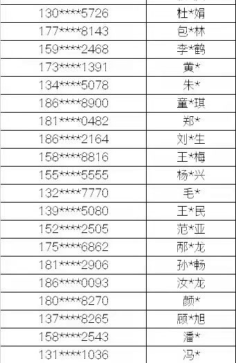 名单如下