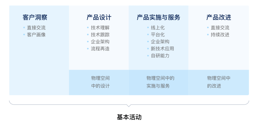 采用 PDCA(计划 - 执行 - 检查 - 改进)的循环理念,把大多数企业的价值创造过程抽象为:“客户洞察 - 产品设计 - 产品实施与服务 - 产品改进”。
