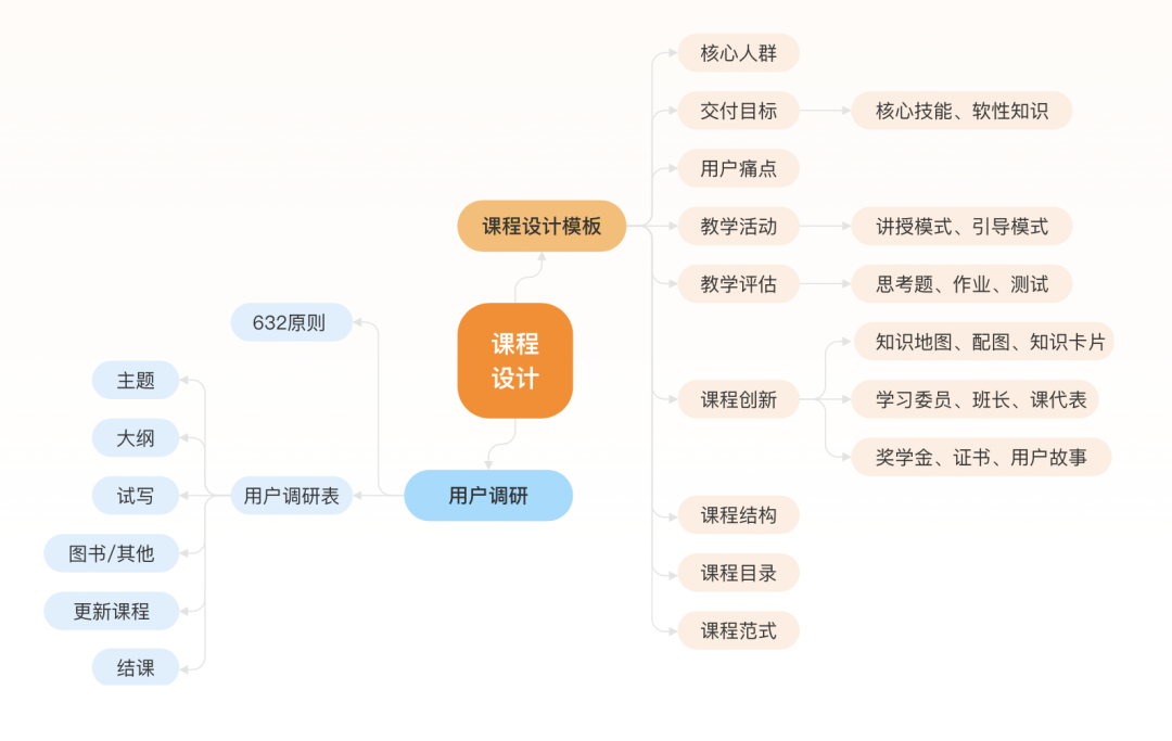 解决了师资的问题,怎么才能生产出好内容呢?这就涉及到内容生产方法论了,主要是课程设计和授课技巧。这两个里面课程设计是基础,如果课程设计不到位,讲得再好最终效果也是会打折扣的。