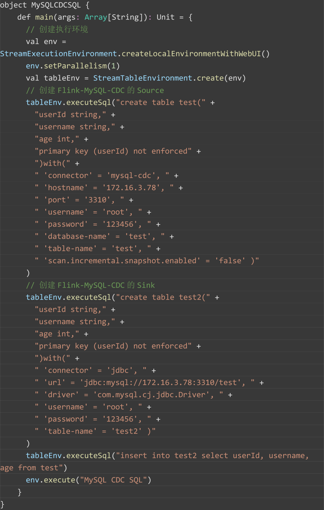 Flink SQL方式监听 MySQL 数据库实现: