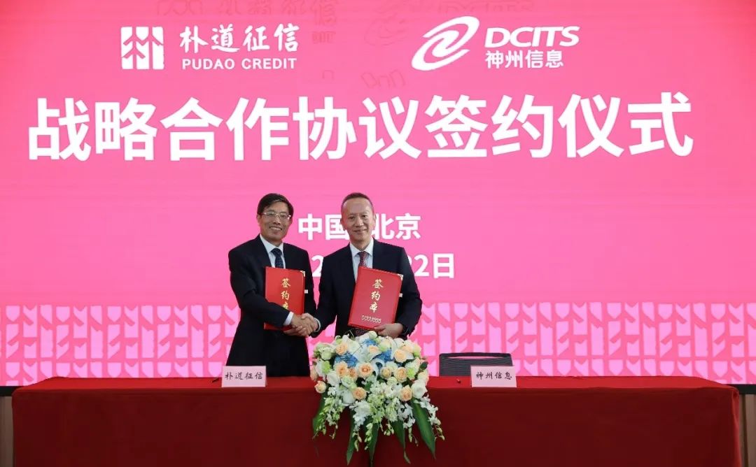 2022年9月22日,朴道征信与神州信息签署战略合作框架协议并在京举行签约仪式。朴道征信有限公司董事长赵以邗、副总经理金波、曹强、市场拓展部总监李智、数据管理部高级专家闫蕾,神州信息总裁李鸿春、副总裁马洪杰、王宇飞、集团战略发展部副总经理张勇华、农业BG副总经理刘烨、中小微金融部总经理辛园出席签约仪式。朴道征信赵以邗董事长、神州信息李鸿春总裁分别代表双方签署协议。