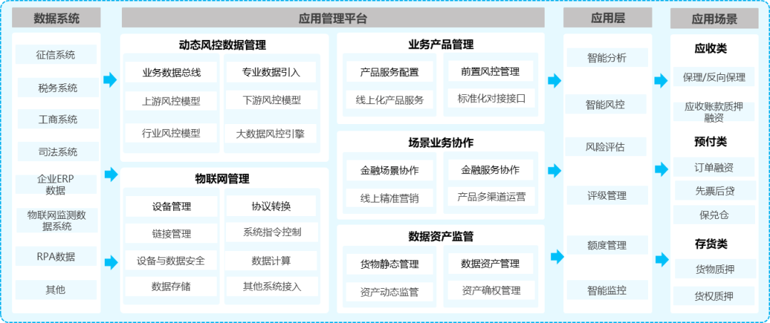 与此同时,神州信息通过融合互联网、大数据、物联网等先进技术,搭建了数字供应链金融平台,应用金融科技手段提升供应链金融服务实体经济的效率。通过微服务技术架构,提供了更好的扩展性和复用性,支持灵活多变的供应链金融业务模式。同时,可根据银行信贷系统的能力状况,进行灵活的方案设计,支持全流程的供应链平台建设。神州信息数字供应链金融平台提供独立的供应链金融产品支持,有针对性地对供应链金融产品及配套的基础设施进行管理,实现产品及业务流程定制化设计应用,在产品创新方面大大提高工作效率,力求破解中小微企业融资难、融资贵的问题,推动中小微企业融资业务的扩面增效。